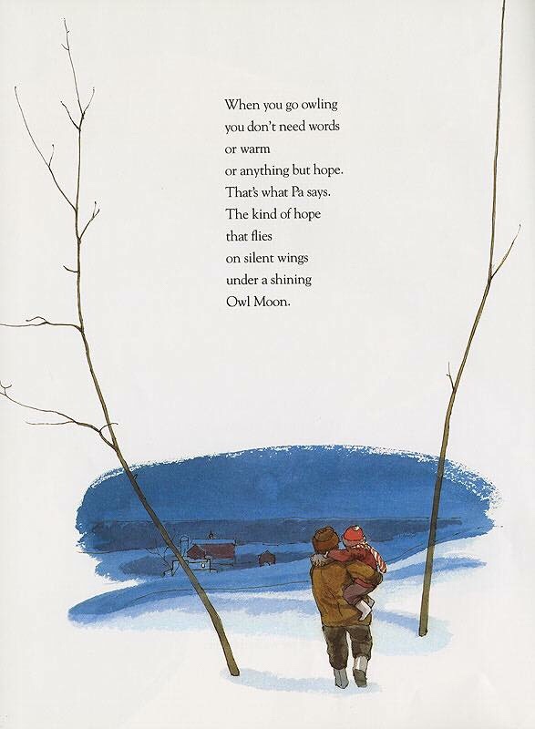 Owl- Next week is spirit week. One day is favorite character day. I love Harry Potter, and his pet owl. Then, when looking back on last year’s plans, I realized yesterday I hadn’t read “Owl Moon” yet. I love that book, and one page in particular.