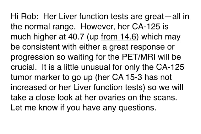 But the huge jump in the tumor markers is not good.