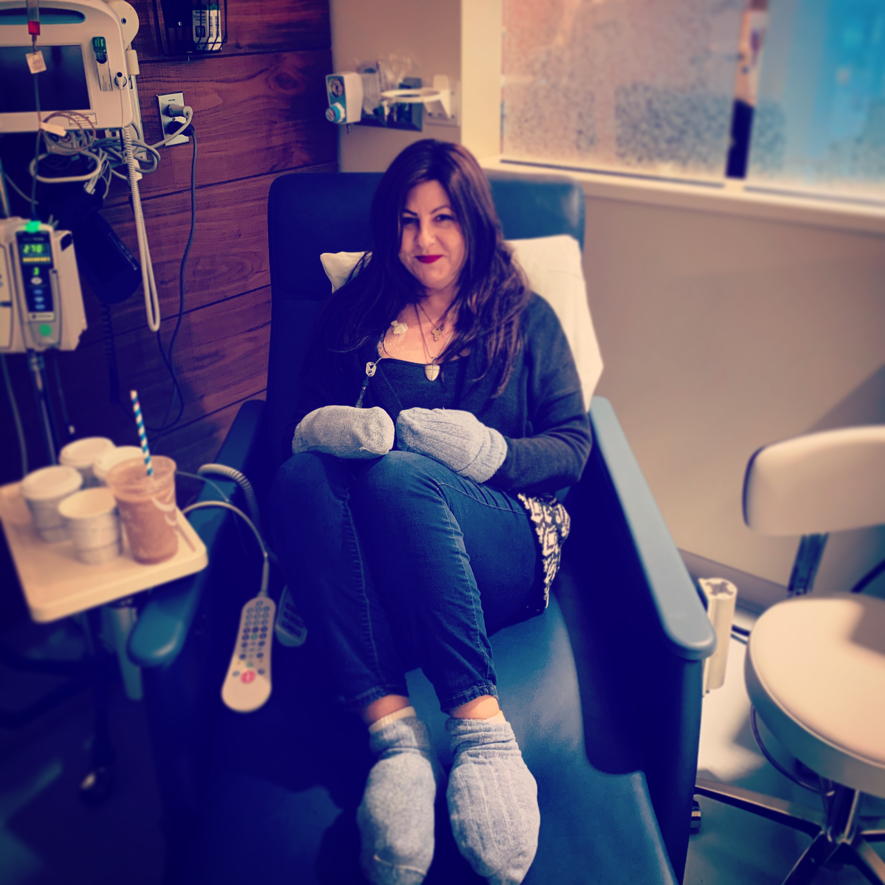 I will be fine by then. We are going with metronomic dosing. Lower doses at a more frequent schedule. So instead of one one big dose once a month, we will do a small dose once every two weeks, or maybe even three. Donnie is pleased with the tumor markers and also noticed a jump in lymphocytes which is good. The spike in oesinophils is probably due to an allergic reaction. We asked when I could go home and it will probably be tomorrow or Sunday. She wants to keep getting fluids and the steroid IV push into me. I’ve been wearing myself off the pain medicine as well.