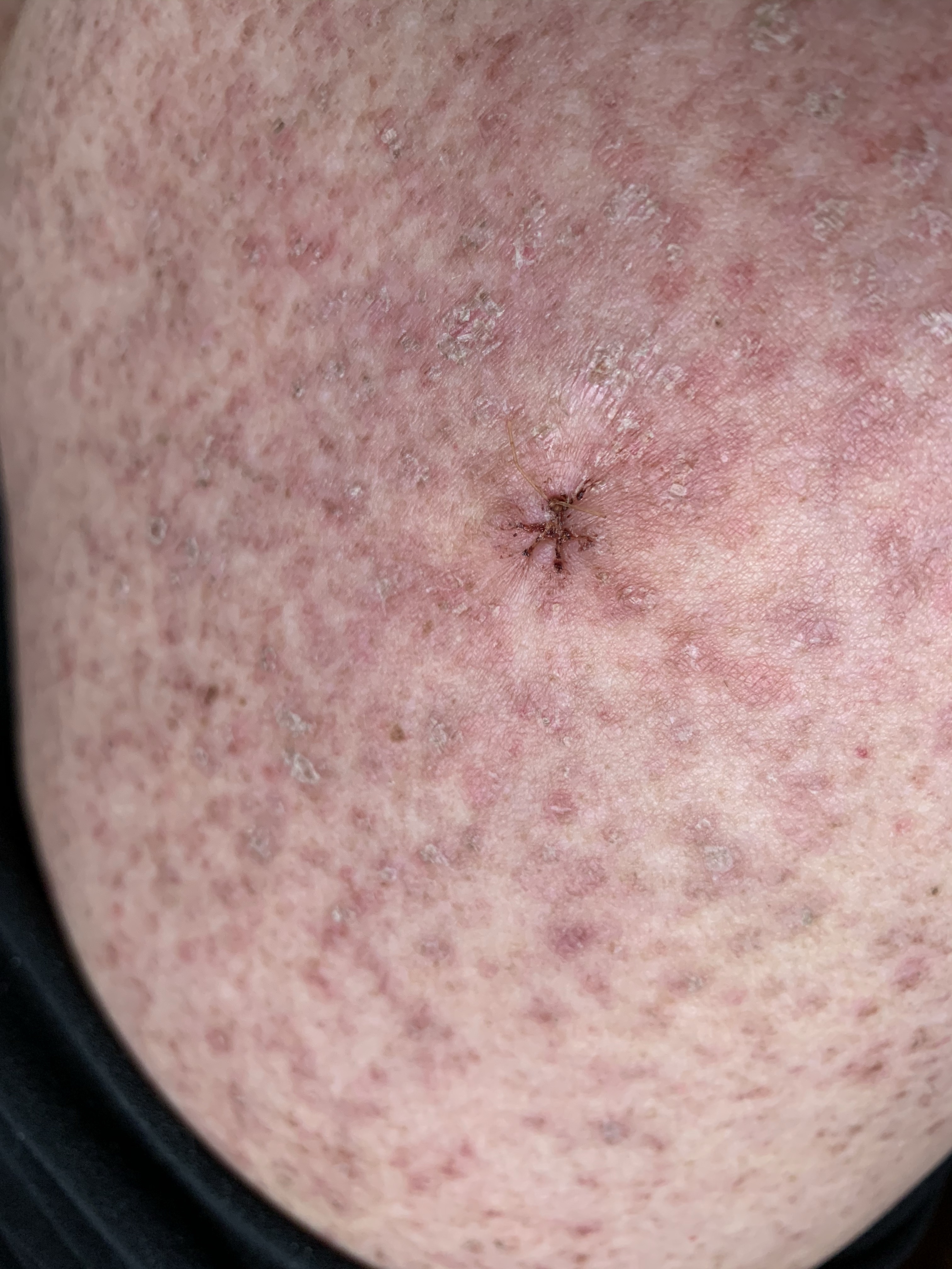 Then he explained he wanted to do a biopsy to make sure it’s simply the type of reaction he is thinking, and to see if it is a deep reaction or just skin. This would entail getting a core sample of my thigh. As my dad always says, “knowledge is power”, so I agreed.