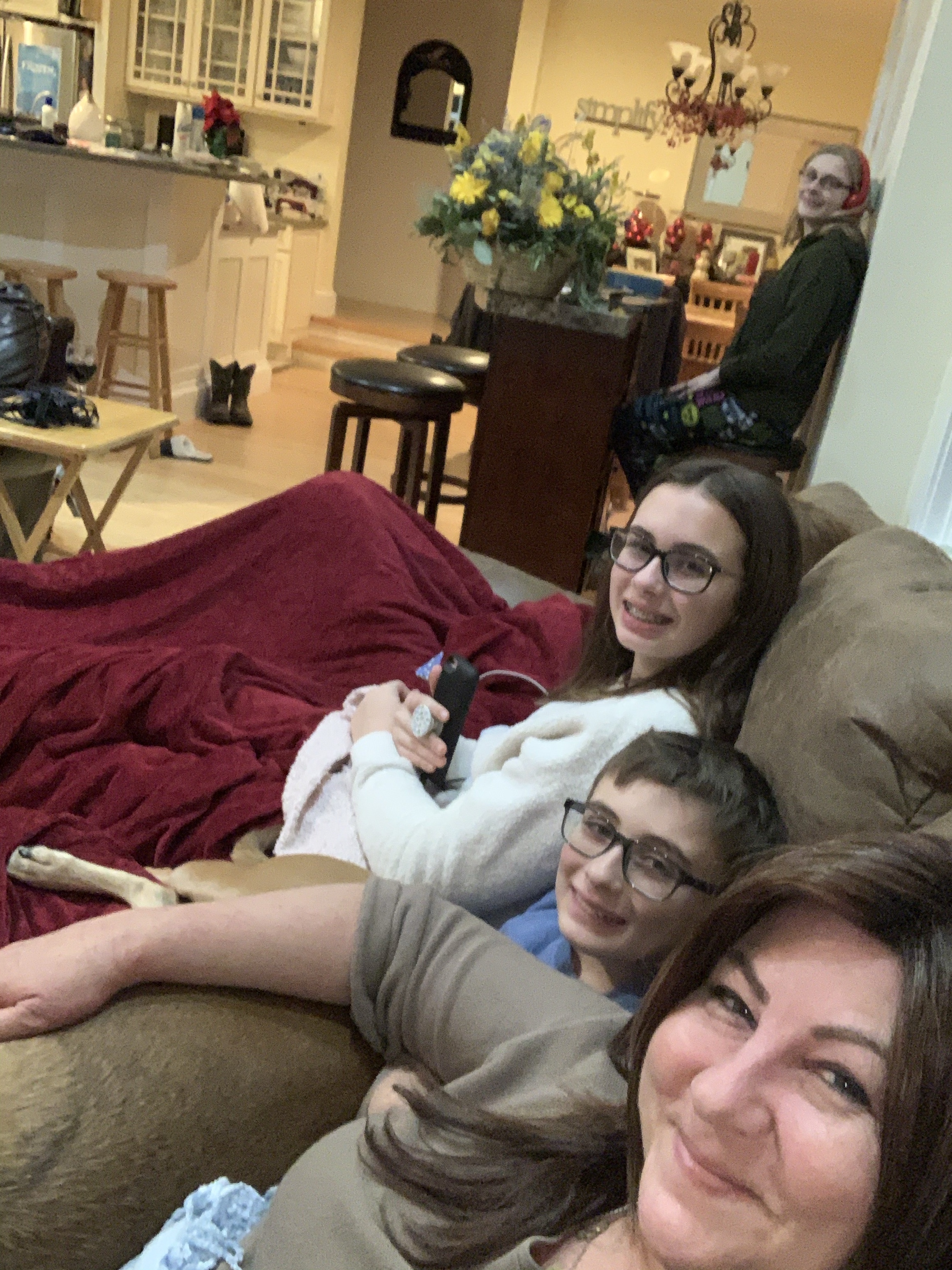 I think my brother Scott is on “Keri duty” today and will bring my mom here. My dad is the kids Uber driver today. Rob is going to come from mid morning until about 3. Jill went over last night to help out with the kids. Morgan got hit in the face in gym and had to have her braces looked at after school, and Quinn had to pack for his big Boy Scout camping weekend. I dont know what we would do without my family. They have been here for us every step of the way.
